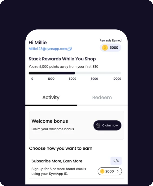 - Subscribe to brands using your SyenApp ID to earn more and keep your inbox clean — no spam, just perks.